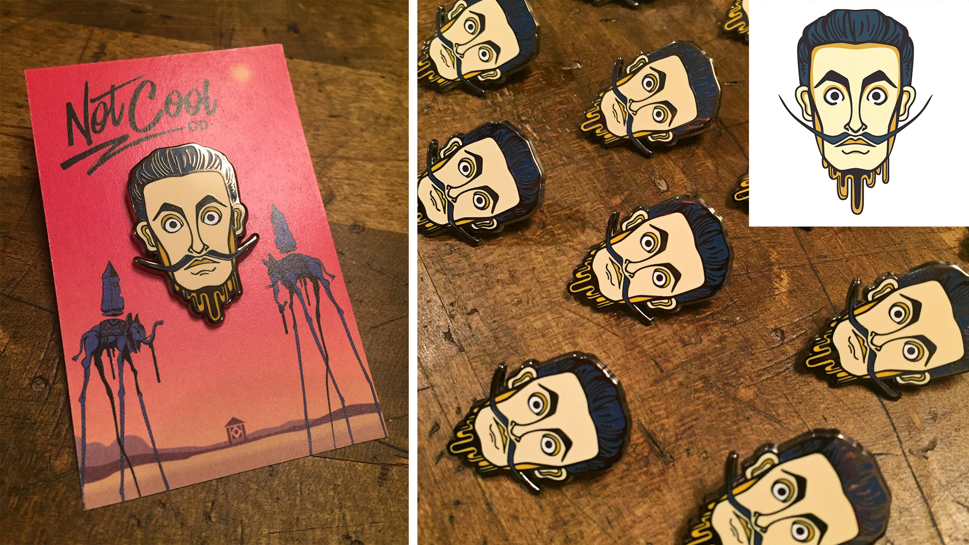 For every day in November, I drew a famous mustache. At the end of the month I picked my two favorites and had them produced as enamel pins. You can buy get yours here: www.notcool.co